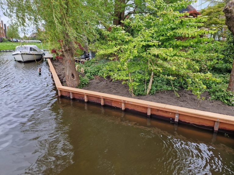 Beschermen van land & water is een belangrijk onderdeel in Nederland. Een veel voorkomende beschoeiing is de beschoeiing van hardhout. Een beschoeiing van kunststof, welke een levensduur van 40/50 jaar haalt, behoort ook tot de mogelijkheden.